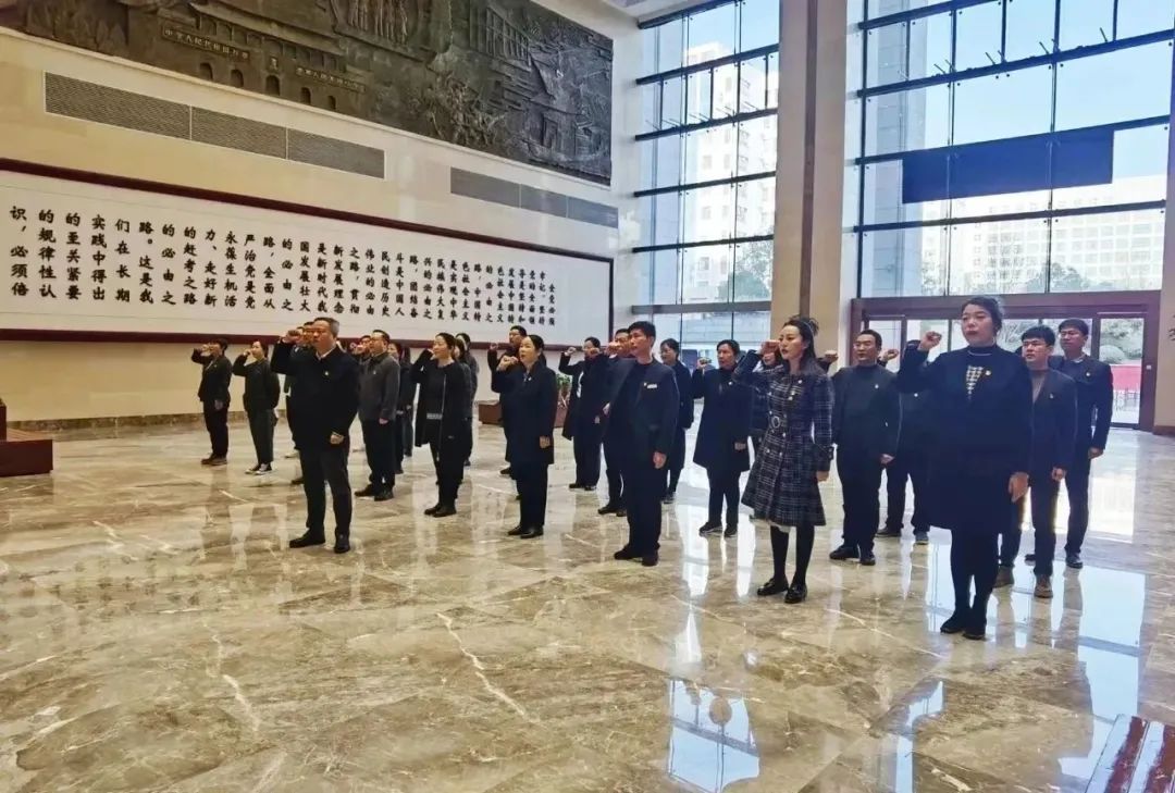 參觀學(xué)習(xí)開始前,公司黨委副書記、副總經(jīng)理成小俊同志帶領(lǐng)全體黨員面對鮮紅的黨旗,鄭重肅立,高舉右拳,以集體宣誓的方式重溫入黨誓詞。一句句鏗鏘有力的誓詞,表達(dá)著對黨的絕對忠誠和為黨的事業(yè)奮斗終身的決心。